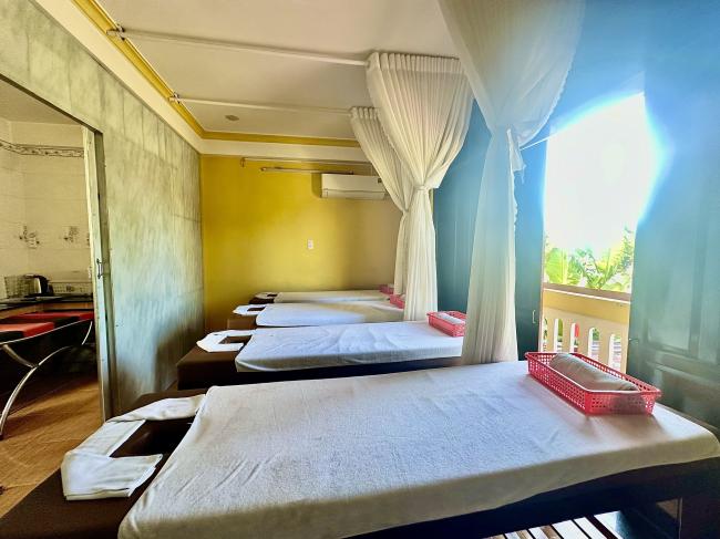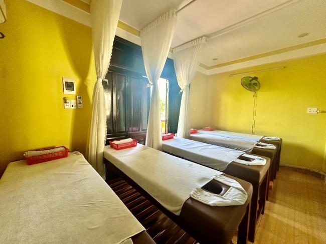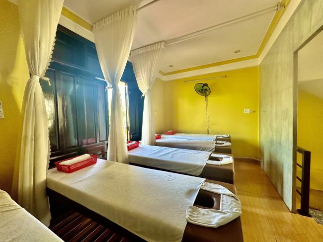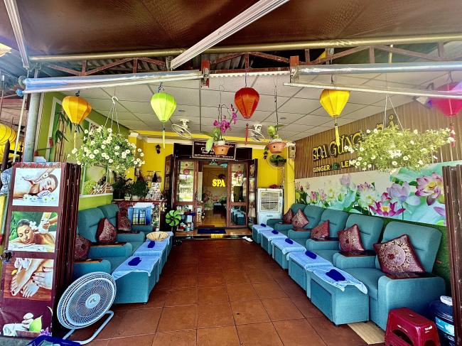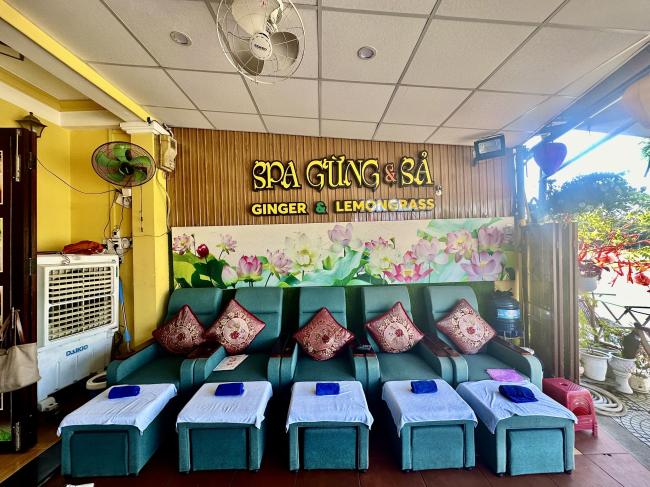 Gừng & Sả Spa được biết đến là một spa chất lượng nhưng giá rẻ đã trở thành điểm đến quen thuộc của du khách mỗi lần đến du lịch Hội An cần không gian để thư giãn, phục hồi năng lượng. Nơi đây vô cùng yên tĩnh, ấm cúng, màu sơn vàng nâu dịu nhẹ và được trang trí bằng thực vật, đèn lồng,.., tạo nên sự sang trọng, nhẹ nhàng và thư thái.
